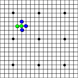 | O xogo consiste en ir poñendo fichas nas interseccións para rodear e así capturar as fichas do contrario. |