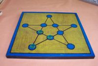 Colócase unha ficha en calqueira punto libre do taboleiro, e dícese “Un”. A continuación, seguindo unha liña móvese ao seguinte punto, ocupado ou non, dicindo en voz alta “dous”.
