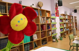 Nos recreos xa está disponible diariamente para todo o alumnado; tres compañeiras do Equipo da Biblioteca encárganse de atender e orientar aos nenos e nenas que acuden a ela. A afluencia está sendo moi alta. Nestas primeiras semanas, lóxicamente, temos que insistir un pouco na normativa de uso dos diferentes espacios, na colocación correcta dos libros, na moderación do ton de voz....