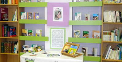 | Un dos proxectos é achegar aos nenos ó contacto cos escritores. Para ísto creóuse un expositor temático. |