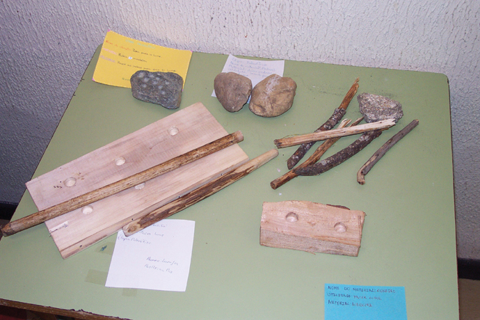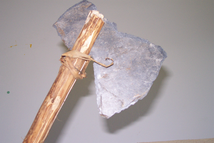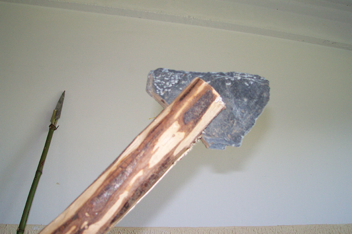 Detalle da machada: pedra e atado |