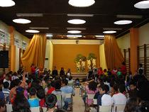 Dentro do ximnasio hai un escenario abatible motorizado que se baixa e acondiciona para as distintas atuacións e representacións teatrais.