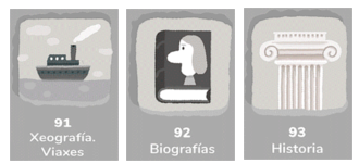 Por último, na categoría número 9 temos os libros que nos falan do pasado, das persoas e os seus feitos e da Xeografía. |