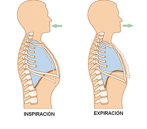 Na inspiración, o diafragma contráese e descende. Os músculos costais tamén se contraen e a caixa torácica aumenta de tamaño, ó se elevaren as costas e o esterno. Deste xeito, ensánchanse os pulmóns, e o aire entra neles.