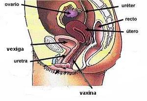 Os órganos sexuais e reproductores da muller atópanse casi por completo no interior da cavidade pélvica. A vulva ou xenitais externos da muller están situados na base da cavidade pélvica. O clítoris é a parte máis sensible dos órganos sexuais femininos. Debaixo do clítoris atópase a saída da uretra -que conduce a ouriña desde a vexiga. A vaxina é un tubo oco muscular, de grande elasticidade, que ten de 10 a 15 centímetros de lonxitude. Aloxa o pene do home durante a relación sexual e é o canal de saída do bebé cando o parto é normal. O útero ou matriz, está situado detrás da vexiga e diante do recto. A súa función é nutrir ó embrión en desenvolvemento ata o seu nacemento. As trompas de Falopio son as encargadas de recoller os óvulos que veñen desde os ovarios e levalos ó útero. Os ovarios son as glándulas sexuais que albergan os óvulos e producen as hormonas sexuais. |