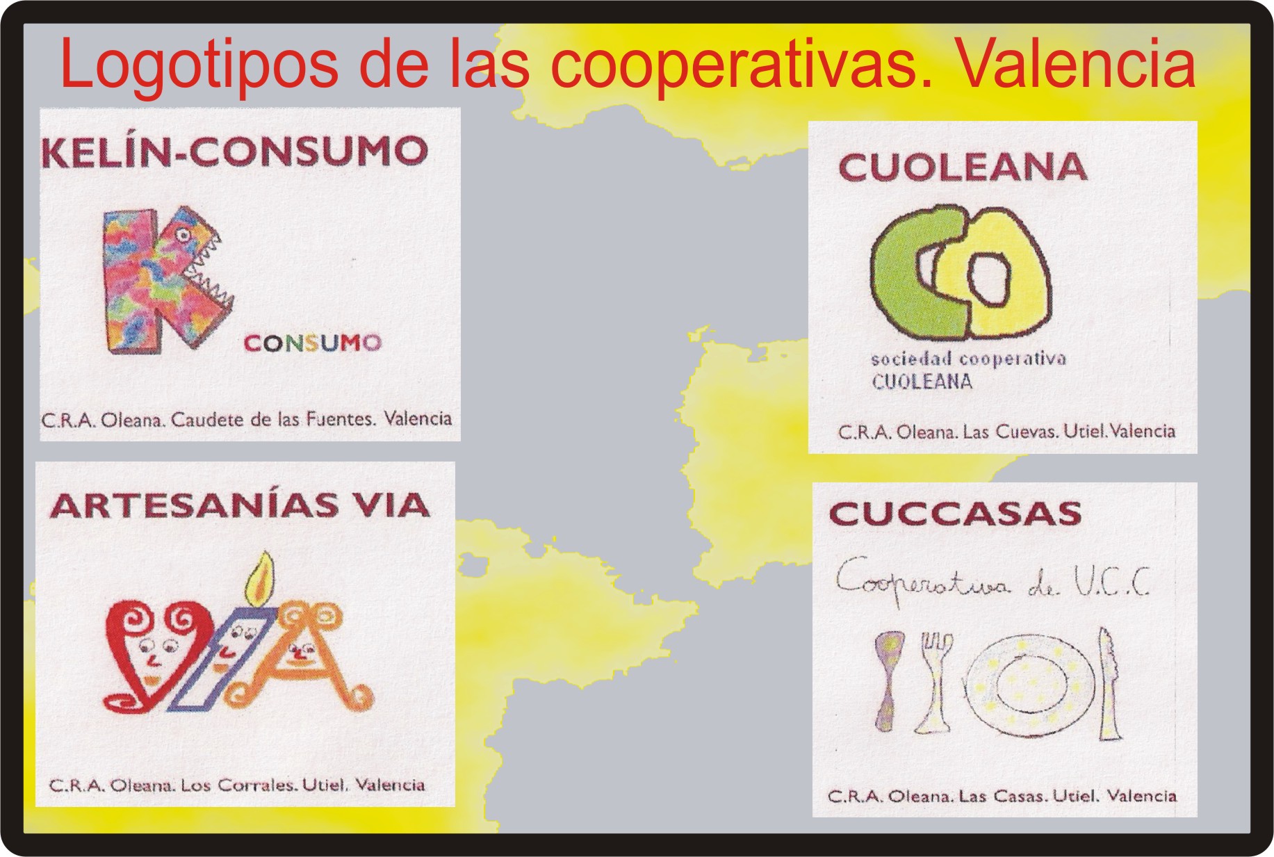 El C.R.A. Olena, de Caudete de las Fuentes, Valencia, tiene en marcha varias cooperativas. Aqui teneis nuestros logotipos ylas fotografías de una de nuestras ventas.