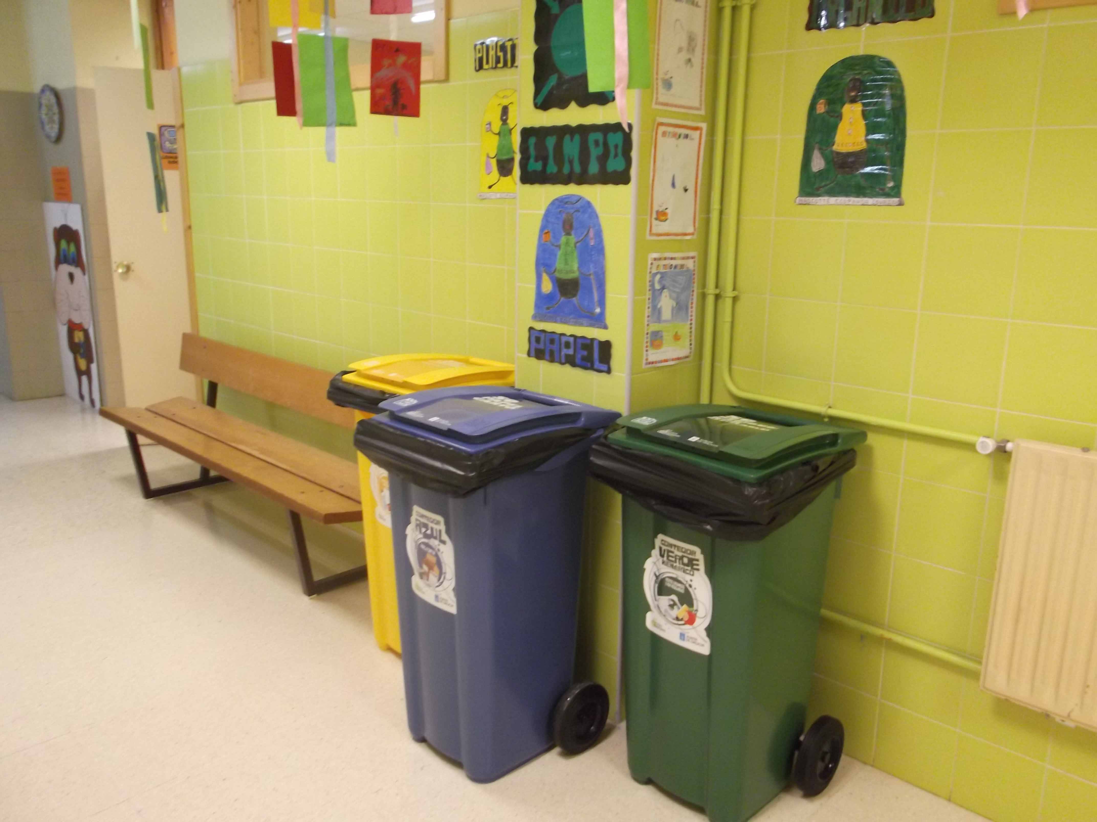 Tamén colocamos as dúas illas de recollida selectiva do colexio; unha en cada planta do edificio.Así será máis fácil valeirar o lixo das aulas.