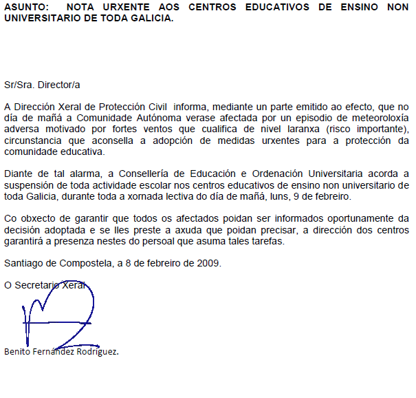 LUNS DIA 9 DE FEBREIRO SUSPENSIÓN DE TODA ACTIVIDADE ESCOLAR |