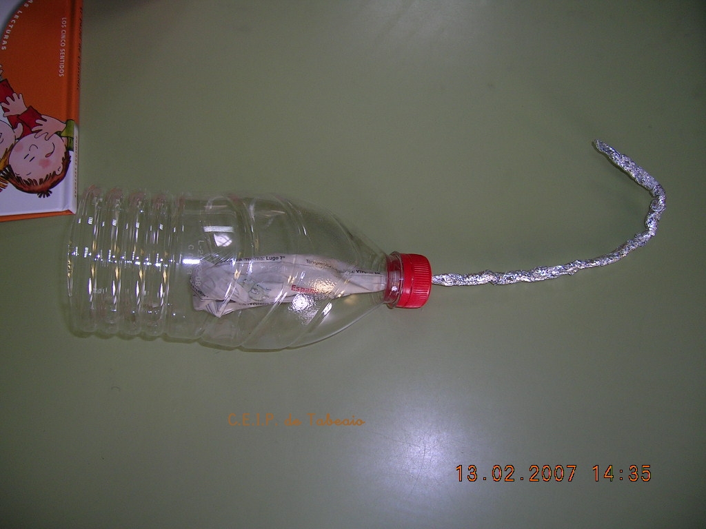 O gancho: botella de plástico e papel de