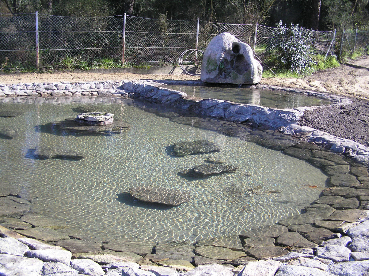 - Deseño de tres estanques para diferenciar varios hábitats: zona de auga corrente, zona de auga estancada, zona pantanosa.