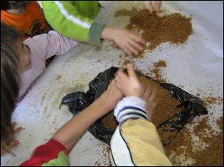 Reciclando os restos de comida. |
