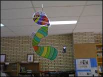 Tamén as mascotas da biblioteca voan polos aires. |