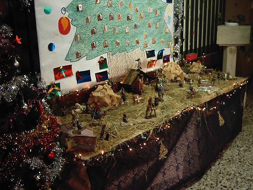 O belén este curso académico 2004-2005 foi colocado na entrada do colexio a diferencia do ano pasado. AS figuriñas son figuriñas convencionais pero o entorno do portal de Belén está convintemente decorado con herbiñas, pedriñas e garabuxiños que lle dan unha grande apariencia de realidade.