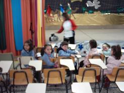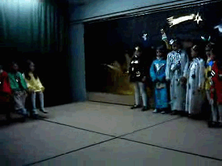 Este pasado nadal do ano 2004 fixemos no noso colexio do Xurés unha función titulada "Unha estrela moi especial". Coa peculiaridade de que tódolos nenos e nenas da escola participaron na función representando un papel agás a meirande parte dos nenos de sexto e algún de quinto que se encargou da música baixo a batuta de profesora de música (mARÍA). A función -está mal que o digamos nós, pero bueno :)- foi un exito rotundo, conseguindo que a comunidade educativa ó completo que estivo presente como espectadora ofrecese unha quente ovación ó remate do acto. Perdoade a baixa calidade das fotos, pero están sacadas do vídeo feito polo profe de inglés (ten que facer un cursiño de video dixital). Ademáis dende esta WEB ténde-la posibilidade de visionar un fragmento da función grabada en vídeo tan só presionando AQUÍ. Tés que ter un chisco de paciencia, pois dependendo da túa conexión ó internet e do teu ordenador verálo máis ou menos depresa.