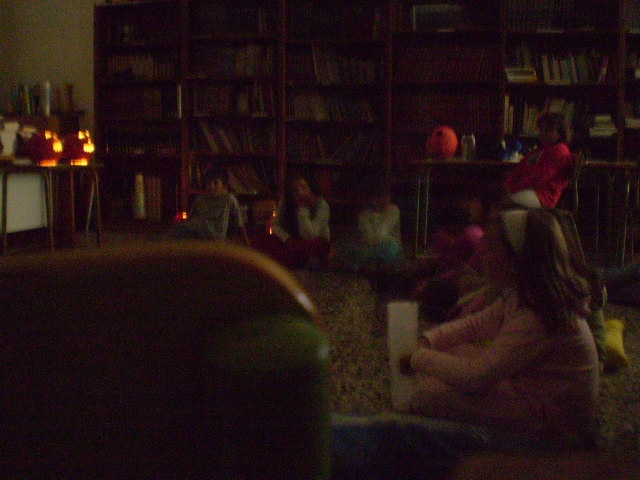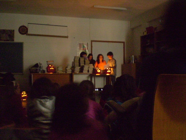 primaria reuníronse na biblioteca para compartir historias de medo á