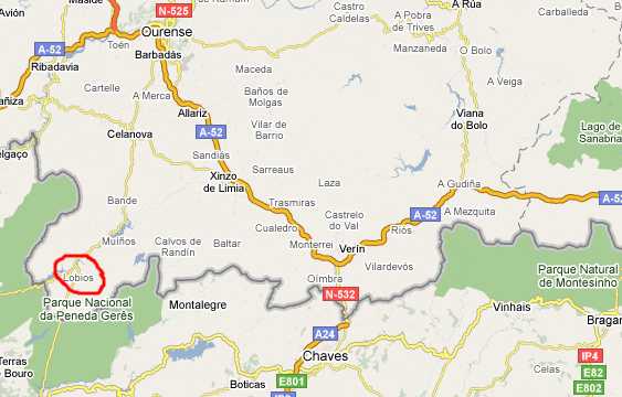 Para chegar a Lobios hai que coller a estrada N-540 cara ó sur. Despois hai que pasar pola Manchica, Celanova, Bande, etcétera. A distancia dende Ourense é de aproximadamente 65 km. Na ruta atópanse varios lugares de interese turístico. En Celanova está o mosteiro de San Servando, no que podemos admirarnos con varias das súas marabillas. Por un lado está a igrexa, cun fabuloso órgano e un restaurado coro barroco. Tamén temos a capela de San Miguel, un bo exemplo de arte mozárabe. Os dous claustros tamén son moi interesantes. Nun deles atópase o instituto de ensino secundario. A remodelación que este experimentou para albergar as aulas e pasillos foi moi admirada e ségueo sendo. O outro claustro conserva o seu aspecto orixinal. Uns poucos km. ó pasar Bande chegamos a Porto Quintela. Aquí topamos un bo exemplo de vestixios romanos. O campamento militar de Aquis Querquernis está situado nunha importante vía romana, que unía Bracara con Astúrica, as actuais Braga, en Portugal e Astorga, en León. No centro de interpretación podemos ver algunhas das pezas que apareceron nas excavacións e darannos información sobre a xacemento. Un pouco máis adiante está Santa Comba de Bande, cuxa igrexa é un dos poucos exemplos de arquitectura relixiosa visigótica que podemos atopar en toda a península ibérica. Se tivesemos máis ganas de explorar podemos ir a ver os dolmens do Salas, preto de Muíños, e na mesma ruto, a Cela, unha interesante vila na que os habitantes optaron para construir as súas casas por aproveitar os penedos do monte que alí se atopaban. Por último, aínda que se podería seguir, xa pasando Lobios está Río Caldo, célebre nos últimos anos polo seu famoso balneario, que recentemente recibiu un premio europeo pola súa calidade. Ó pé do balneario temos unhas pozas termais así como os restos dunha mansión romana na que aínda se pode observar o sistema de calefacción. Esta mansión, chamada Aquis Originis está ma mesma ruta que Aquis Querquernis. Mapa de estradas.