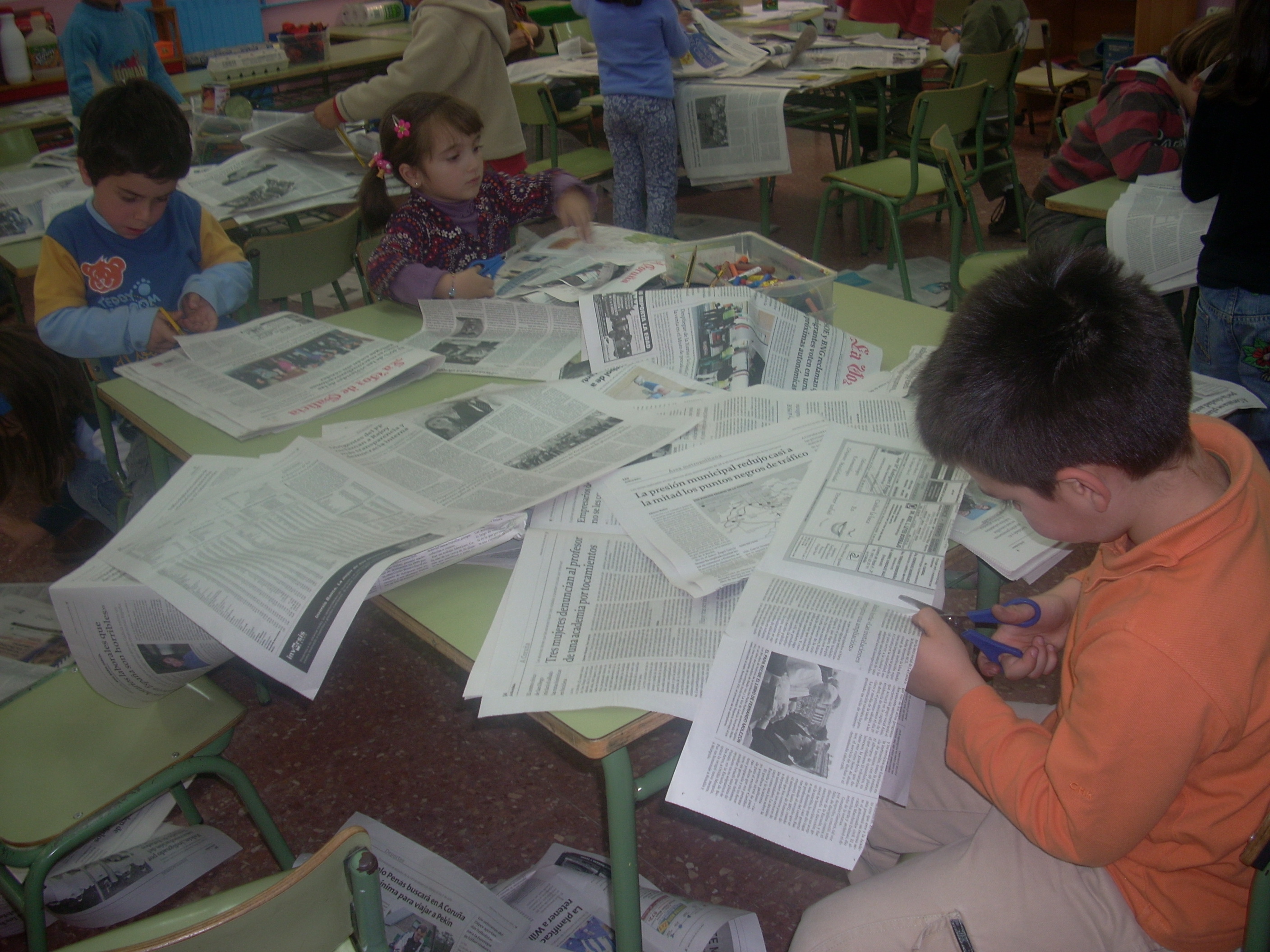 traballar co xornal na aula: buscamos noticias, recortámolas,