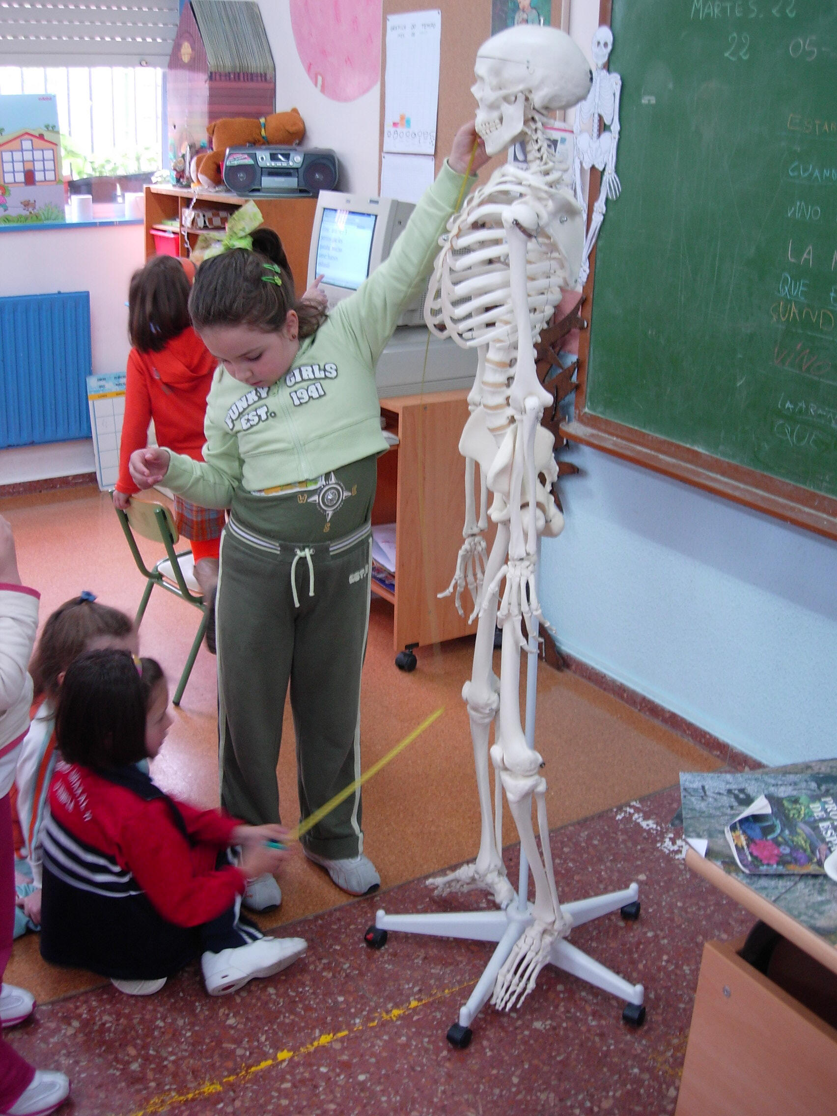 corpo humano, mesmo trouxemos un esqueleto para a clase e con el