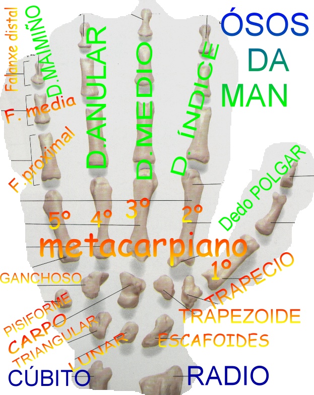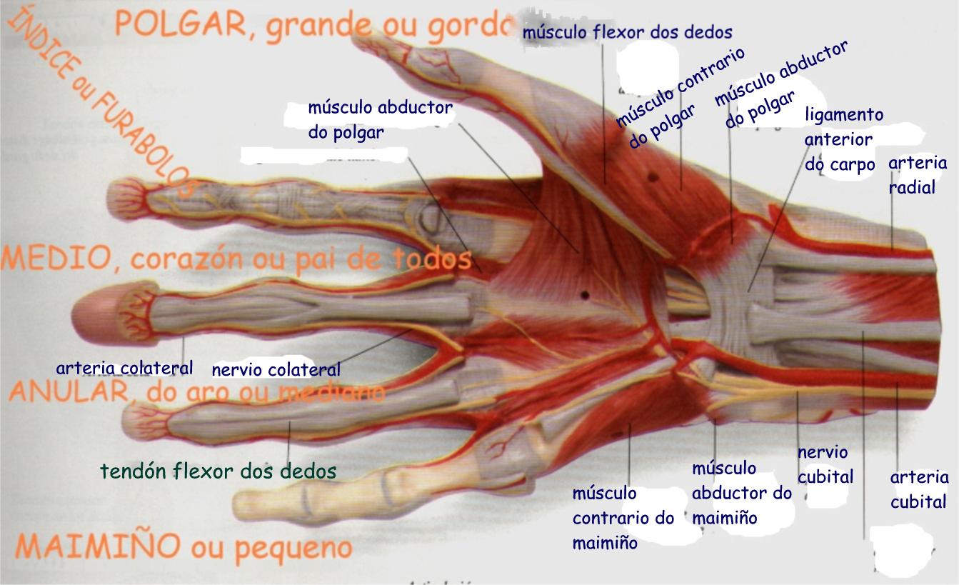 delicadas, así como accións poderosas de presión. A disposición dos seus 27 pequenos ósos, movidos por 37 músculos conectados os ósos polos tendóns, permite un amplo marxe de movementos. A nosa maior habilidade consiste en xuntar as puntas dos polgares co resto dos dedos, e esto, unido a unha extraordinaria sensibilidade na punta dos mesmos, da ás mans humanas unha singular destreza. |