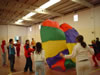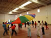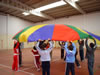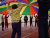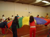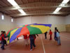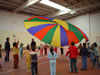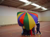 O paracaídas é un exemplo de actividade cooperativa onde tódolos participantes colaboran para un fin común co obxectivo único de divertirse.