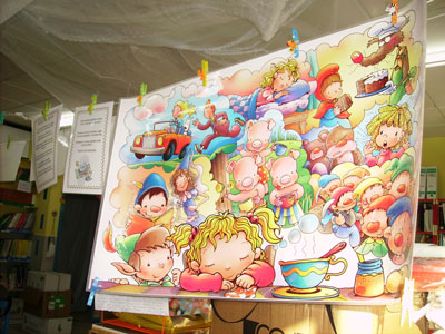 Valen inventadas ou copiadas das que xa existen no mercado. Na biblioteca estaba colgado un poema de amor, tivemos que lelo e buscar as personaxes no mural