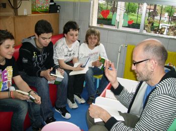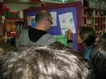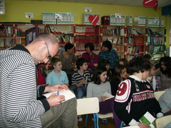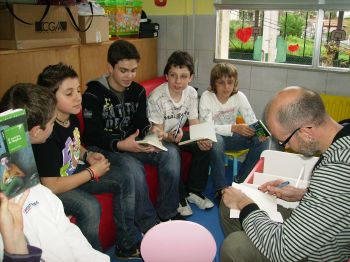 O día 21 de abril na nosa biblioteca tivemos unha nova animación de "MARCOS S. CALVEIRO" da Editorial TAMBRE cos nenos e nenas de 6º. Tamén lles firmou os libros cunha dedicatoria especial a cada un. |