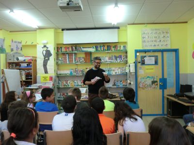 O 12 de maio visitounos o último premio Merlín de Xerais, Antonio Fraga. O alumnado de 6º de Primaria tivo a oportunidade de intercambiar opinions co autor de "O CASTAÑEIRO DE ABRIL". Falaron da historia, dos personaxes, dos valores que transmite, ... Pregúntáronlle polos seus comezos e a súa inspiración para facer historias. Foi un encontro moi entrañable. O alumnado de 6º fixo traballos sobre o seu libro. Algúns dos traballos feitos polo alumnado para esta ocasión foron expostos na Biblioteca. Asinou o libro de Honra e os seus librs para os nenos e nenas de º. De agasallo para él unha pombiña, símbolo do noso colexio. Tamén lle fixemos unha foto diante do Paseo da Fama. |