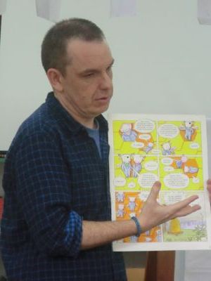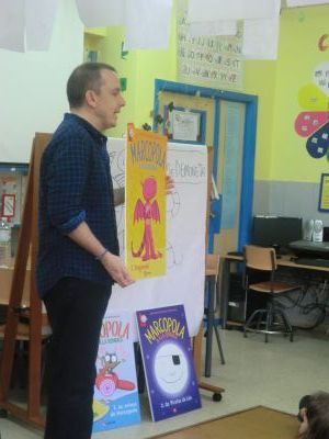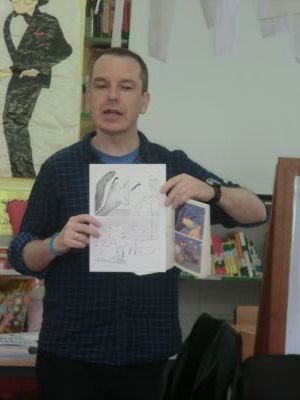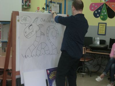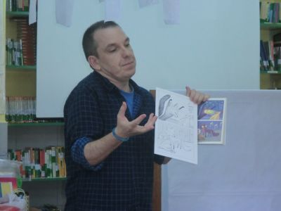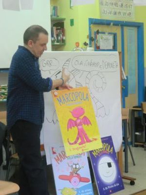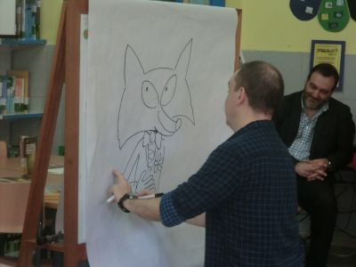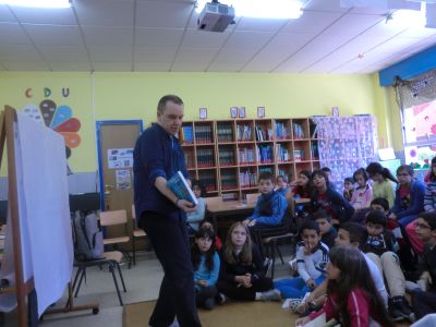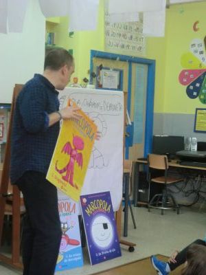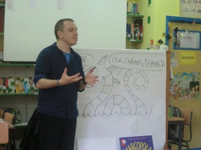 Visitounos o día 30 de maio pola lectura "O RAPOSO E A MESTRA". Neste caso o ilustrador do libro estivo co alumnado de 4º de Primaria. O alumnado fixo debuxos sobre este libro e tamén lle asinou aos alumnos e alumnas este libro. Paseou diante do noso Paseo da Fama. |