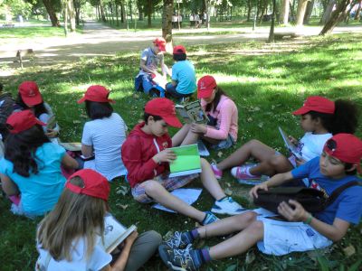 O 15 de maio de 2014 no Parque de Castrelos celebramos a I QUEDADA LITERARIA. Varios colexios (Ría de Vigo, Chouzo, Carrasqueira, Frian-Teis, O Pombal e Santa Mariña de Redondela) e institutos (O Castro e Pino Manso) da zona de Vigo e alrededores para facer actividades entorno á lectura. Despois da benvida, tivemos 20 minutos de lectura individual silenciosa en zonas asignadas. A continuación intercambiaron lecturas, marcapáxinas e merenda. Finalmente noutra zona do parque cada colexio representou algo relacionado coa lectura ( un poema, unha canción, un conto, ...). Foi unha xornada estupenda. |