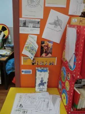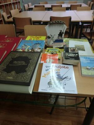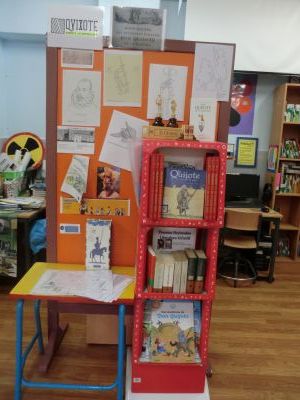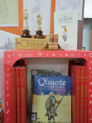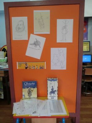 Este curso durante a Semana do Cómic, que celebramos do 9 ao 17 de decembro, decidimos adicalo a D. Quixote, xa que no 2015 se cumpre o IV Centenario da publicación da 2ª parte deste libro. Colocamos paneis informativos sobre o cómic e a figura de D. Quixote; tamén invitamos ás familias, a través dunha carta que nos axudasen a facer unha exposición con distintas cousas sobre este personaxe: libros, cómics, apoia libro, ... Moitas grazas a tódolos que nos axudaron coas súas aportacións. |