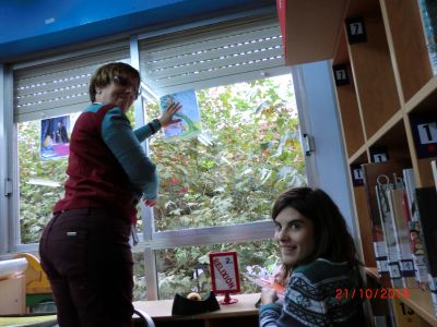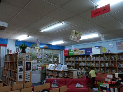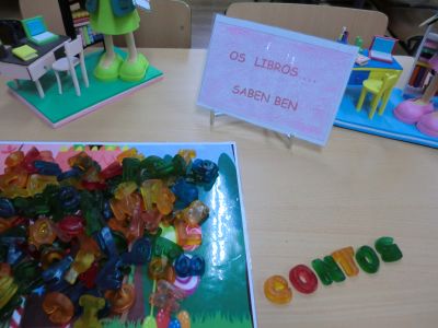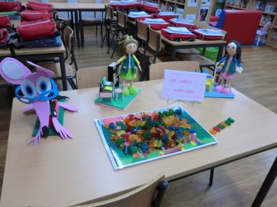 Durante a segunda quincena do mes de setembro e a primeira de outubro estivemos preparando todo o necesario para poder inaugurar este curso a nosa Biblioteca. Buscamos libros de contos e personaxes para poder decorar a entrada principal do cole, xa que o tema elixido este ano foron os contos. O Equipo da Biblioteca preparou todo o material necesario para poder comezar coa actividade bibliotecaria: mochilas viaxeiras, libros agasallos das aulas, carpetas, pasaportes de lectura, decoración de paneis, fiestras da biblioteca e a entrada principal, chuches, ...