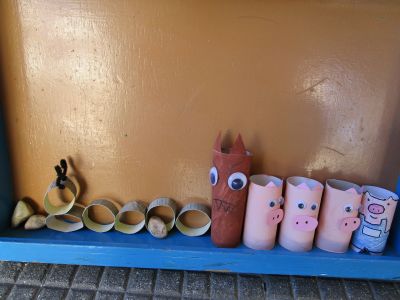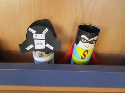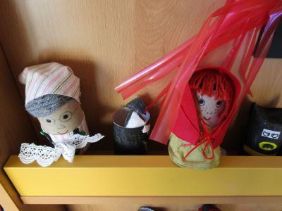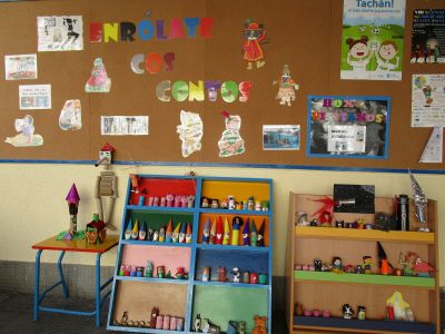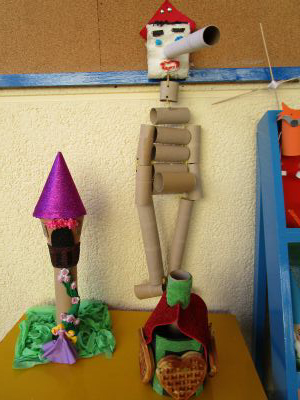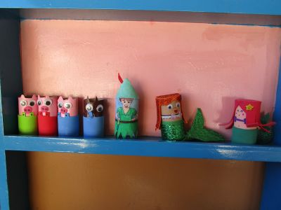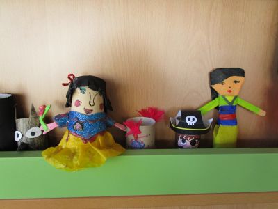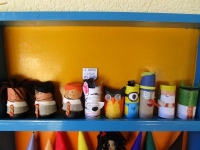 | Con motivovo do Mes dos Libros os nenos e nenas coa axuda das súas familias, fixeron diferentes personaxes de contos con rolos de papel hixiénico. Dende o 18 ao 28 de abril fixemos unha exposición que levaba por título "ENRÓLATE COS CONTOS". | ||