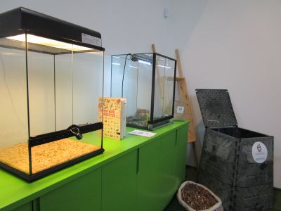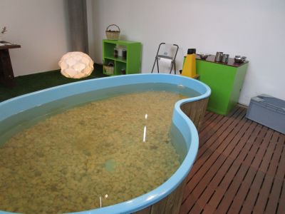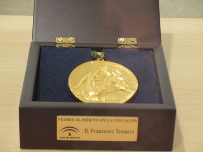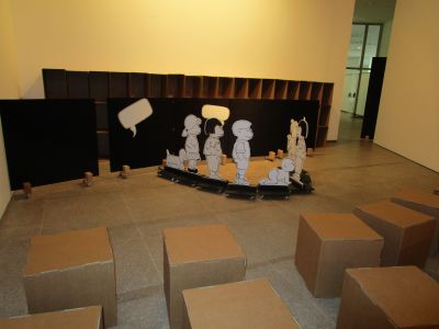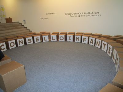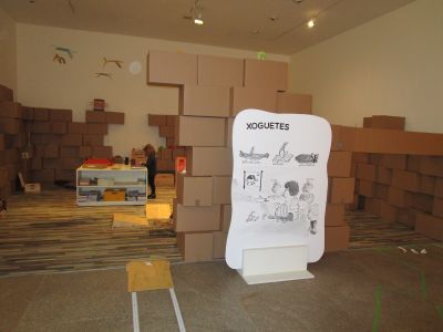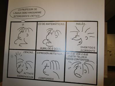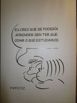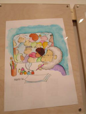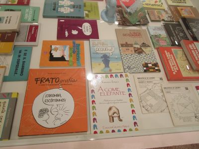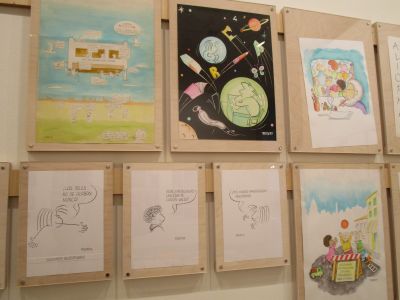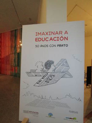 a educación. (50 anos con Frato)". Alí puideron ver diferentes carteis escritos e debuxados por el, libros, recordos, ... Tamén xogaron nus recunchos: construccións, debuxo, construcción de xoguetes.