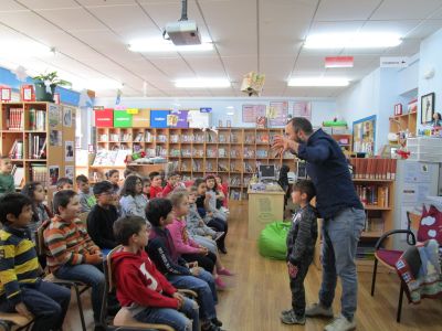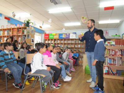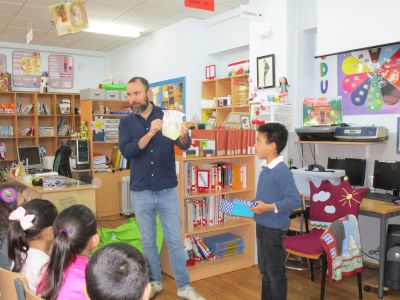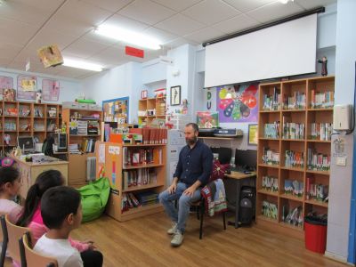 Comezamos o mes de maio cunha animación. Neste caso IAGO LÓPEZ (pola Editorial Anaya) viulle contar aos nenos e nenas de 1º e 2º o conto de "FELIZ FEROZ". Unha historia un pouco estraña onde a este lobo encantábanlle as cenorias para comer en vez de as ovellas.