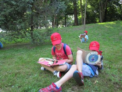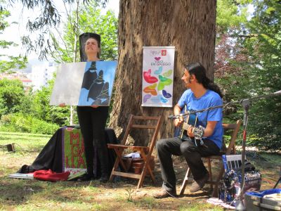 Quedada Literaria. Alí disfrutaron dunha xornada literaria nun entorno único. A actividade rematou cun acto de clausura levada a cabo pola Biblioteca Neira Vilas onde Bea Campos (Migallas) contounos un montón de contos. Antes de marchar todos xuntos cantamos e bailamos a canción "O libro máxico". |