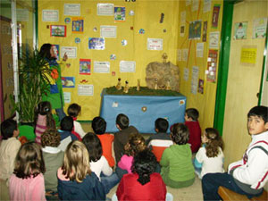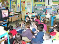 En 4º xa empezamos a estudiar algúns relatos e personaxes, como por exemplo a historia de Abrahán, Moisés.. Aquí estamos na biblioteca vendo unha película relacionada co tema de Moisés. Iso si, tocou vela unha vez rematado e traballado o tema para entender mellor o que estabamos a ver. |