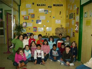 | O alumnado de 3º contempla o mural feito polo Nadal | |||||