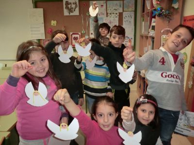 No Nadal fixemos un Anxo para levar para a casa e para o Día da Paz unha coroa. Tamén uns "PAZatempos". |