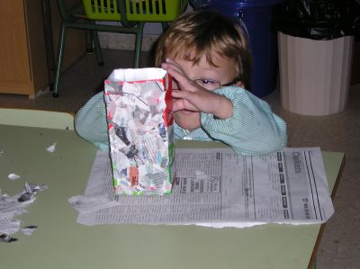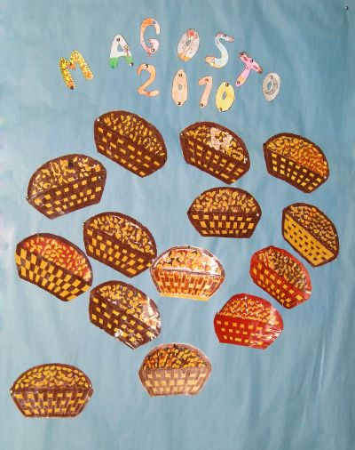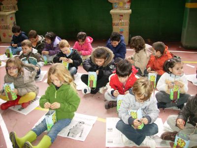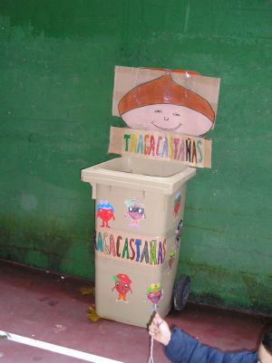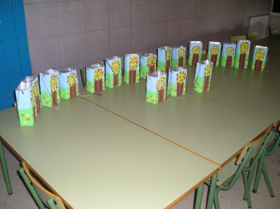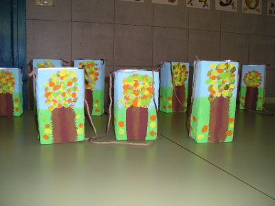 Este ano preparamos unhas cestas especiais para comer as castañas, decoradas con árbores do outono como homenaxe ao Ano Internacional do Bosque. Como contribución ao coidado do noso planeta reciclamos cartóns de leite para elaboralas.
