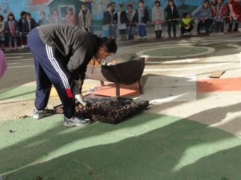 Rematados os xogos todo o alumnado para a degustación das castañas. |