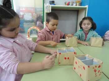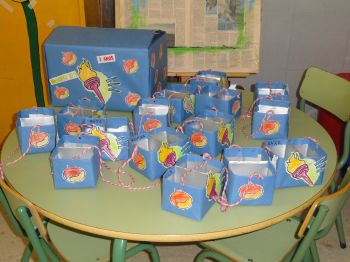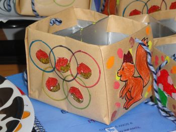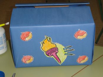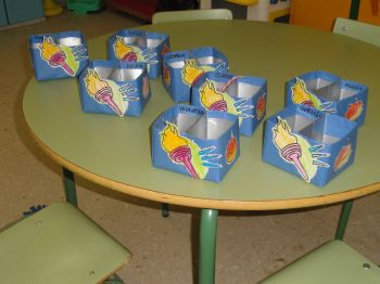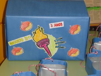 Este ano preparamos unhas cestas especiais para comer as castañas, decoradas co tema dos xogos olímpicos. Como contribución ao coidado do noso planeta reciclamos cartóns de leite para elaboralas.