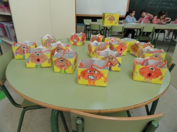 Este ano tamén preparamos unhas cestas especiais para comer as castañas, decoradas co tema das emocións. Como contribución ao coidado do noso planeta volvemos a reciclar cartóns de leite para elaboralas. |