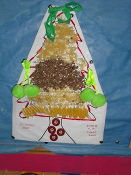 Árbore de nadal: decorado coas aportacións das familias. |