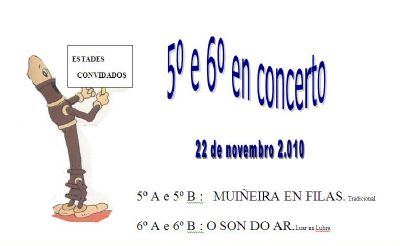 O alumnado de 5º e 6º actuará para todos os seus compañeiros e compañeiras interpretando as seguintes obras: