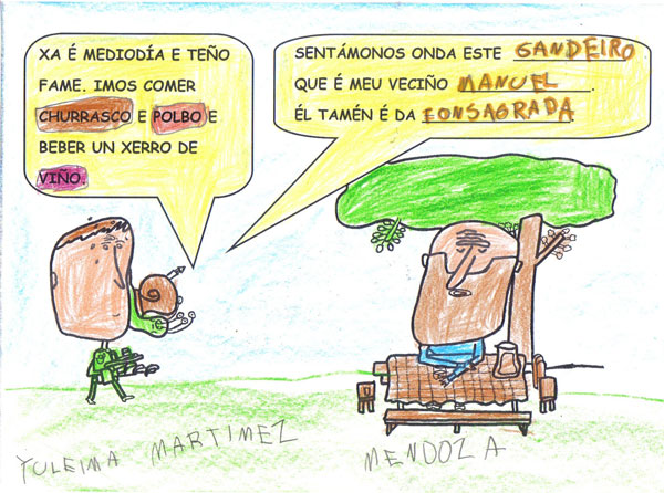 que lle gustaba. A mediodía comeron churrasco e pulpo cunha xarra de viño. No