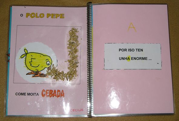Os nenos e nenas de 3 anos aínda non coñecen a procedencia dos alimentos que toman a diario. Tomamos como centro motivador o conto "EL POLLO PEPE". Resultou ser un conto que pedían unha e outra vez que llo contaran. O Polo Pepe encántalle comer trigo, cebada e millo, por iso ten unha gran barriga, un pico moi forte e unhas grandes patas. A historia mantén aos nenos atentos ata o final do relato.