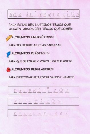 Un novo proxecto na clase dos nenos e nenas de CINCO anos no terceiro trimestre. Cando o ser humano se alimenta leva a cabo unha actividade puramente instintiva.
