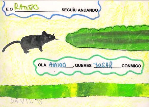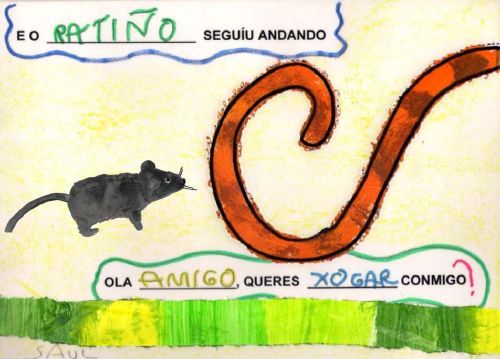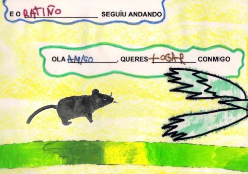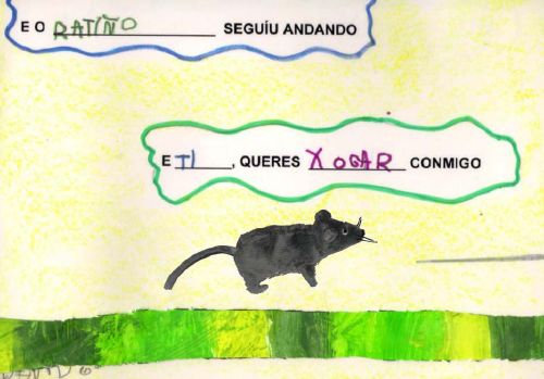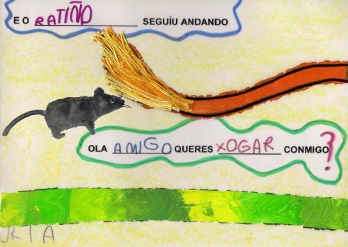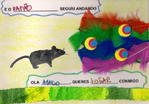 Un novo curso e un novo proxecto na aula de 4 anos A. Ano tras ano tentamos fomentar no noso alumnado o hábito e o gusto pola lectura dun xeito moi atractivo. A lectura é a chave que abre a porta ós coñecementos, a ilusión e a fantasía. A escola emprega esta chave para facilitar a incorporación dos nenos e nenas á cultura e os valores da nosa sociedade; é a mediadora entre os libros e os nenos e nenas. O obxectivo con este novo proxecto foi o de formar lectores que sexan capaces de comprender o significado do que len tanto polo que se di como polo contexto no que se desenvolve. Conta as aventuras dun ratiño que sae a buscar amigos. Atópase con distintas colas de animais pero ningún deles está interesado na súa amizade. Todos están demasiado ocupados para adicarlle tempo o ratiño ata que se atopa cunha cola pequena e gris ¿poderá a súa dona ser a súa amiga? Terás que seguir o noso proxecto se queres descubrilo. Aprendemos que nesta sociedade na que o tempo parece ser tan escaso e valioso, na que parece imposible ter un oco libre (o traballo, as compras, atelevisión, as tarefas da casa, ...), sempre se pode atopar un oco para os demais e todos debemos ter esto como propósito. E ademais o importante que é ter un amigo e que todos debemos tentar ser un deses amigos que precisan os outros. Tamén aprendemos moitísimas cousas dos animais. Se queres seguir aprendendo con nós podes realizar as seguintes actividades: |
