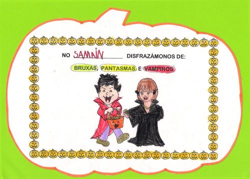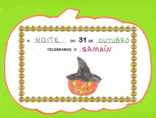 A noite do 31 de outubro celebramos O SAMAÍN. Os nenos e nenas de 5 anos A aprendemos que esta festa empezou cos celtas que celebraban o comezo do Ano Novo con esta festa.