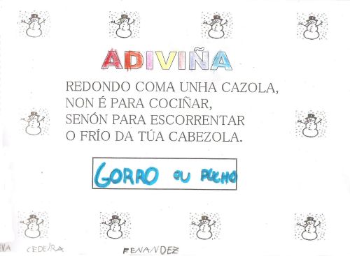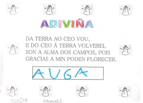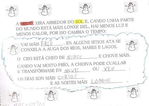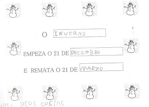 Xa empezou o inverno e notamos moitos cambios ao noso arredor. Os nenos e nenas das clases de 5 anos pregúntanse porque sucede todo iso. Imos axudarlle a descubrilo. TI TAMÉN PODEDES DESCUBRILO CON NÓS ¡¡¡ANÍMASTE!!! EIQUÍ TENDES A MOSTRA DA NOSA APRENDIZAXE:
